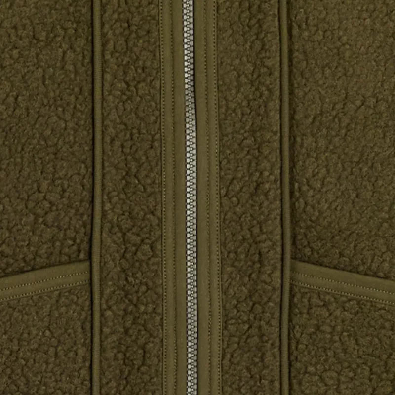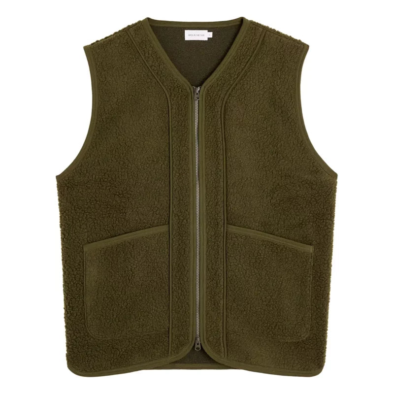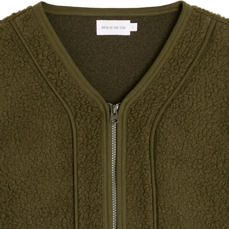 Die Bask in the Sun Weste GOXO Olive ist ein zeitloses und nachhaltiges Kleidungsstück, das optimalen Komfort und Stil vereint. Hergestellt aus hochwertigem italienischen Fleece aus recyceltem Polyester und Wolle, ist die Weste außen weich und flauschig, während die glatte Innenseite für ein angenehmes Tragegefühl sorgt. Mit ihrem V-Ausschnitt und dem doppelseitigen Reißverschluss ist sie sowohl funktional als auch vielseitig. Perfekt für die kühleren Tage, ohne Kompromisse bei Stil oder Nachhaltigkeit einzugehen.