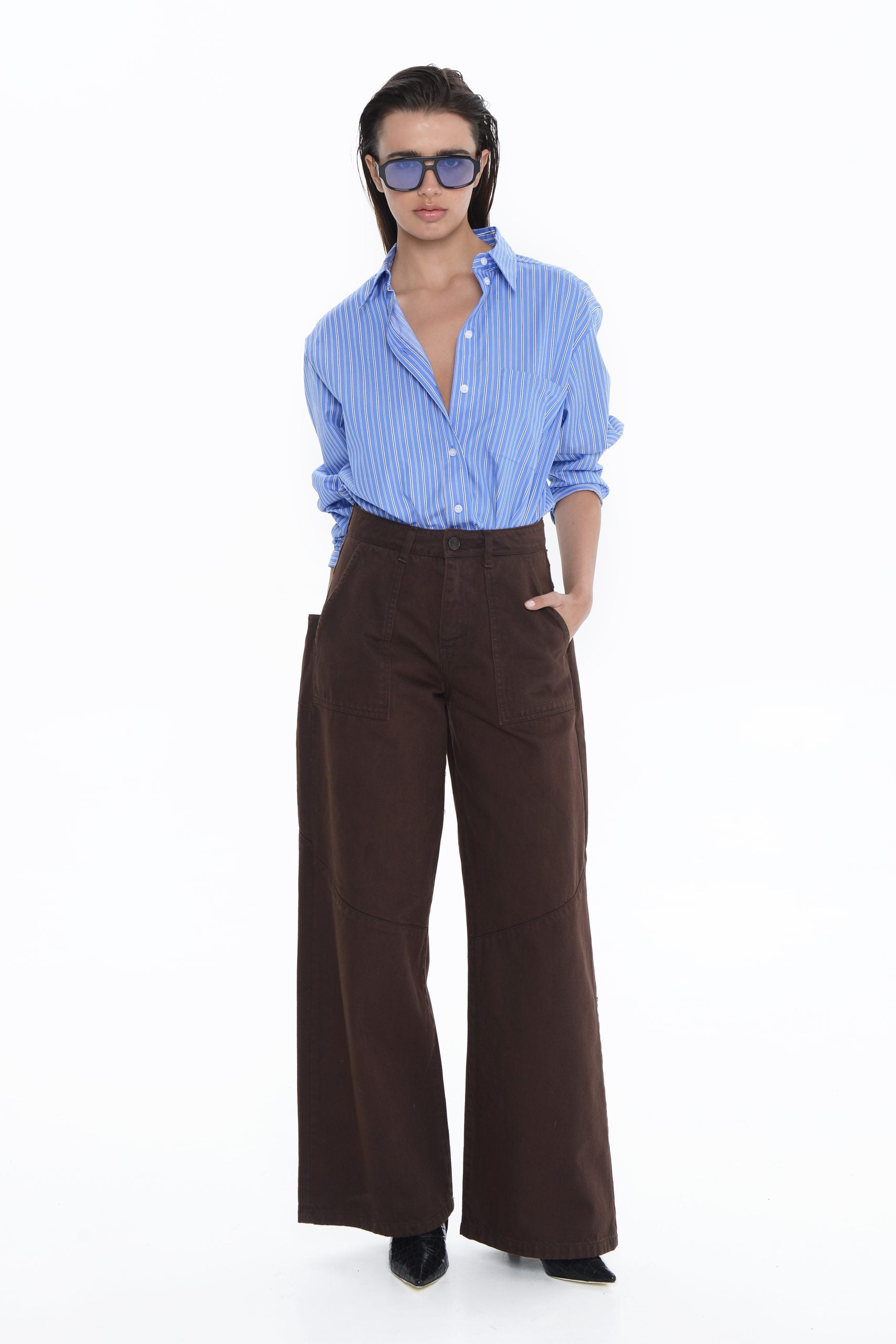 Weit geschnitten . Mit tiefen Taschen am Gesäß