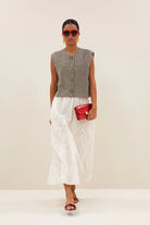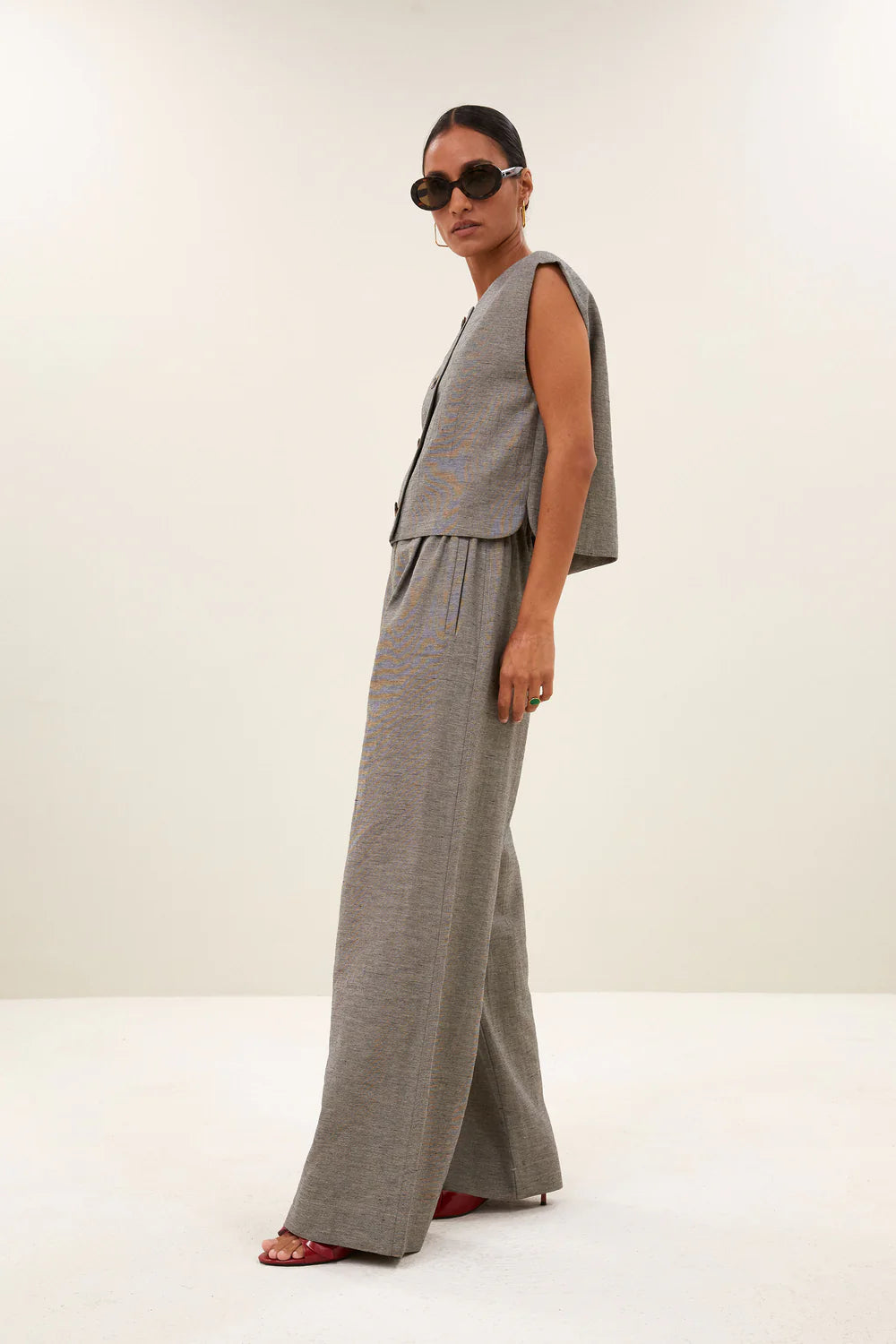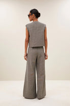 Das Gilet lässt sich ideal mit Stoffhosen, Jeans oder über Blusen und Kleidern kombinieren. Perfekt für einen modernen, zeitlosen Look.