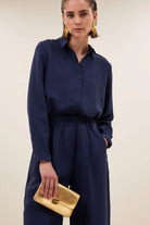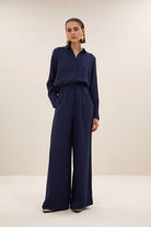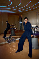 Die versteckten Seitentaschen verleihen der Hose einen cleanen, modernen Look und machen sie zugleich besonders praktisch. Das fein gestreifte Satinmuster in elegantem evening blue bringt einen dezenten Glanz ins Outfit und verleiht jedem Look eine edle, feminine Note.