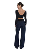 Der Wide Leg Fit sorgt für eine elegante, fließende Silhouette und maximalen Tragekomfort. Besonders auffällig: der hohe Bund mit kontrastierendem Einsatz, der der Jeans eine individuelle Note verleiht und sie von klassischen Wide-Leg-Styles abhebt. In sattem Blue Denim ist die Alaia vielseitig kombinierbar – ob casual mit Cropped Top und Sneakern oder elegant mit Blazer und Heels.