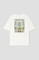 Die Vorderseite ziert ein dezentes Spiral-Logo im Retro-Stil, während auf dem Rücken ein großflächiger, farbenfroher „Frontier“-Print im Vintage-Look ins Auge fällt. Das kunstvolle Design mit Naturmotiven verleiht dem Shirt einen einzigartigen Look, der Naturverbundenheit und urbane Coolness miteinander verbindet.