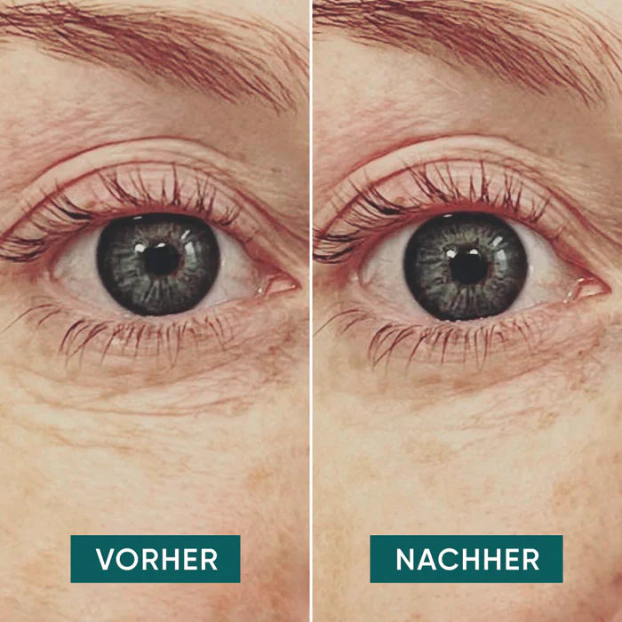 • streiche bestehende Fältchen unter deinem Auge sanft mit den Fingern auseinander