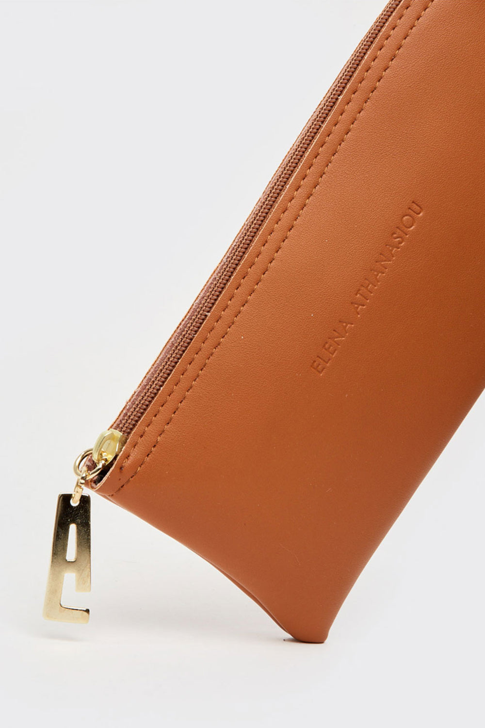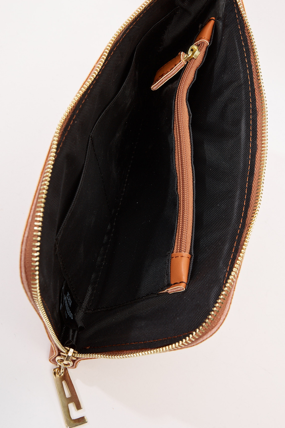Clutch aus Leder. Aus recyceltem Leder. Der Verschluss erfolgt mit einem Metallreißverschluss. Es hat eine interne Hilfstasche. Mit Futterfutter.
