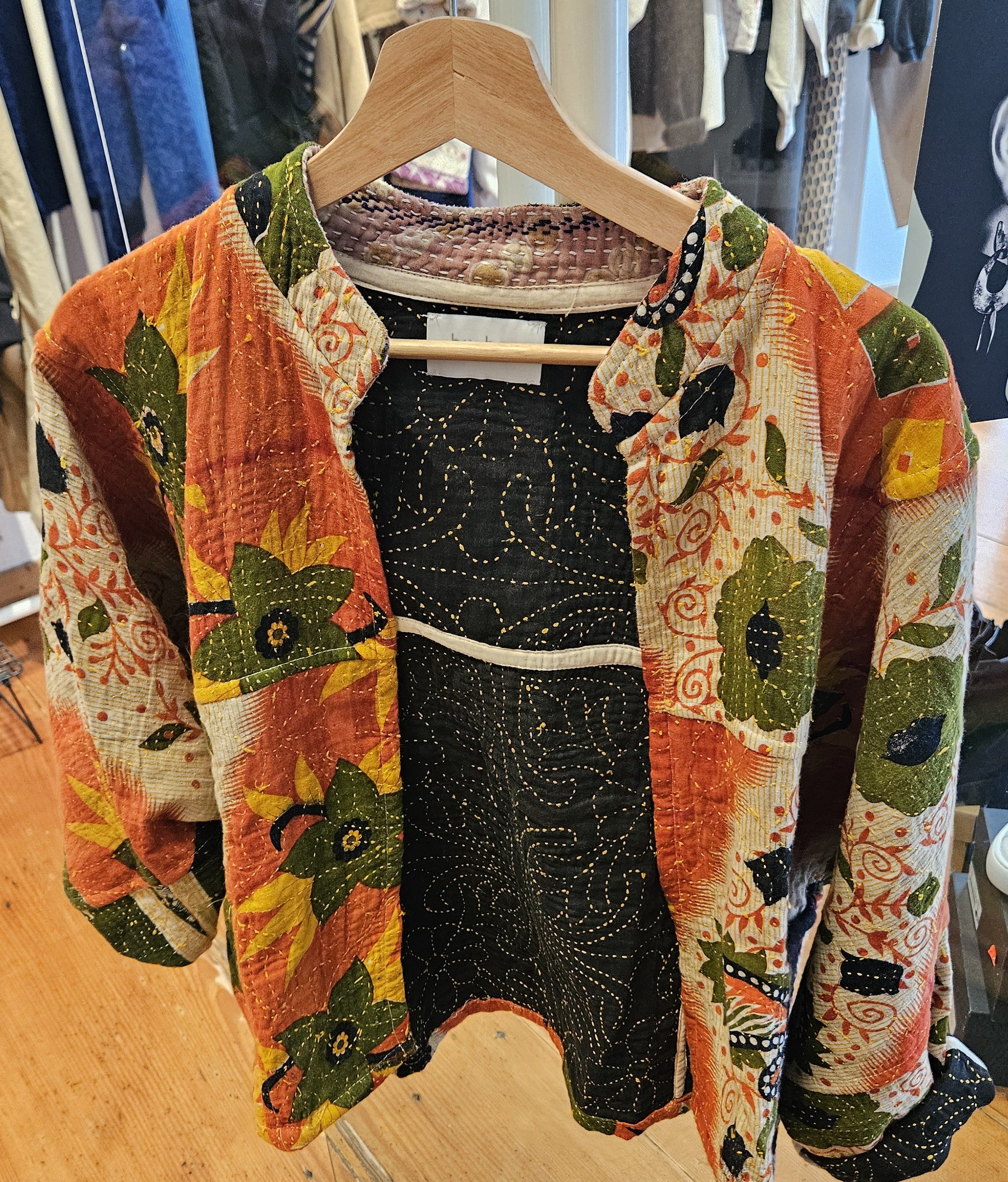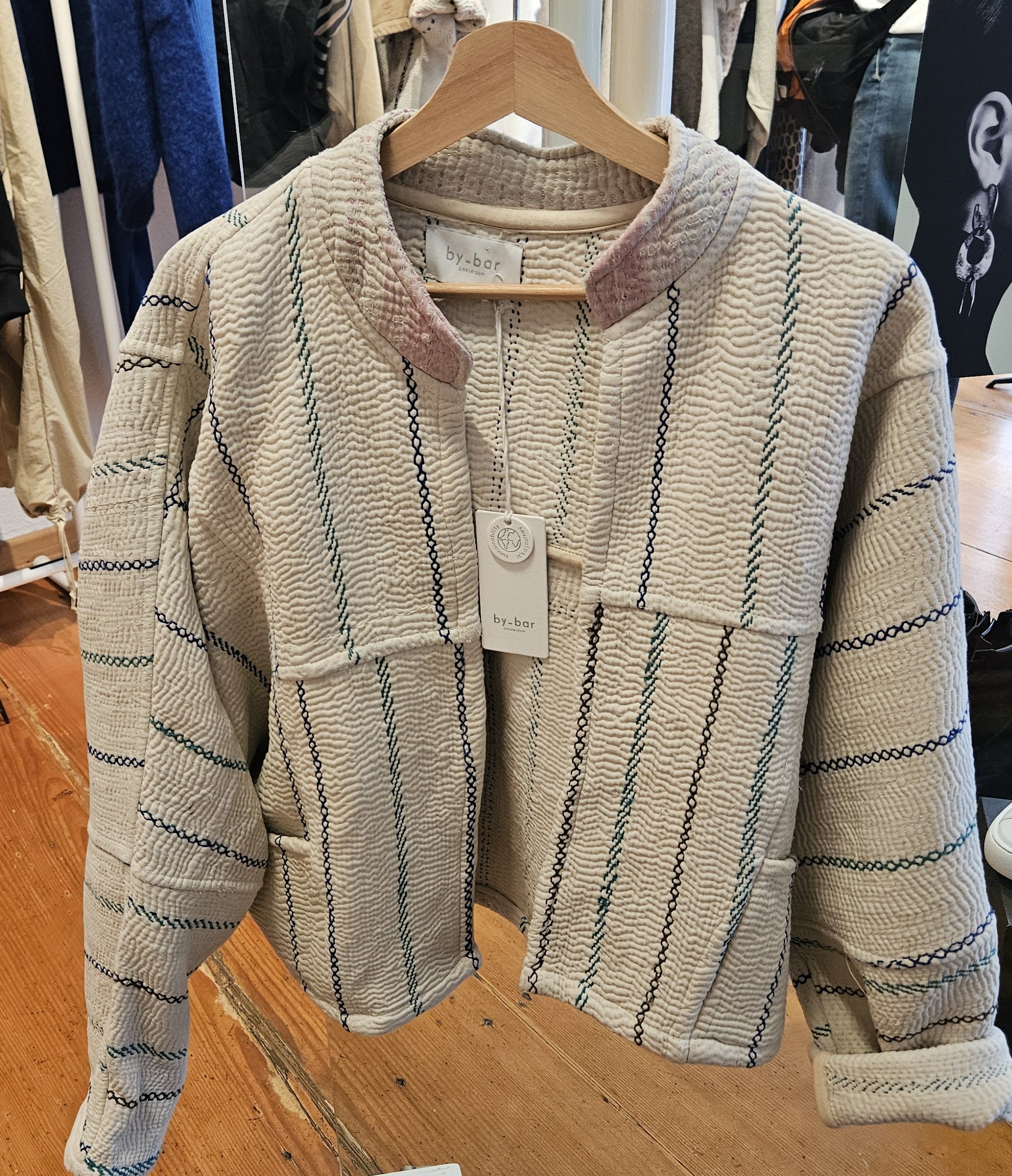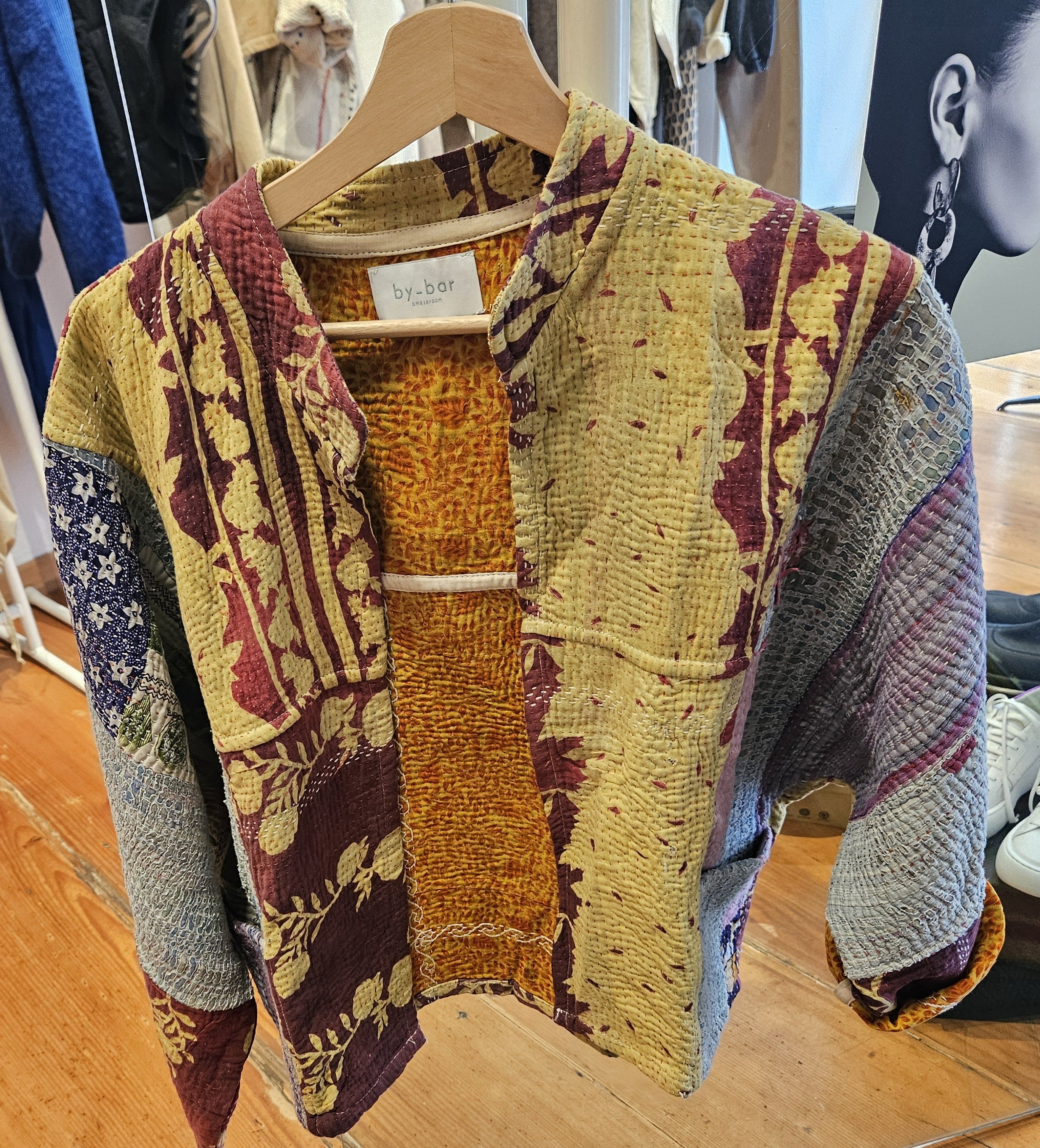 Ανακαλύψτε τα αποκλειστικά μπουφάν από την by-bar, τη βιώσιμη ετικέτα από το Άμστερνταμ. Κάθε μπουφάν είναι μοναδικό, φτιαγμένο από ανακυκλωμένα σάρι ή χαλιά. Αυτή η ειδική κατασκευή διασφαλίζει ότι λαμβάνετε πάντα ένα μοναδικό κομμάτι που μπορεί να διαφέρει από τη φωτογραφία που εμφανίζεται. Μικρά λάθη ή λεκέδες είναι σημάδια γνησιότητας και προσεκτικής ανακύκλωσης.