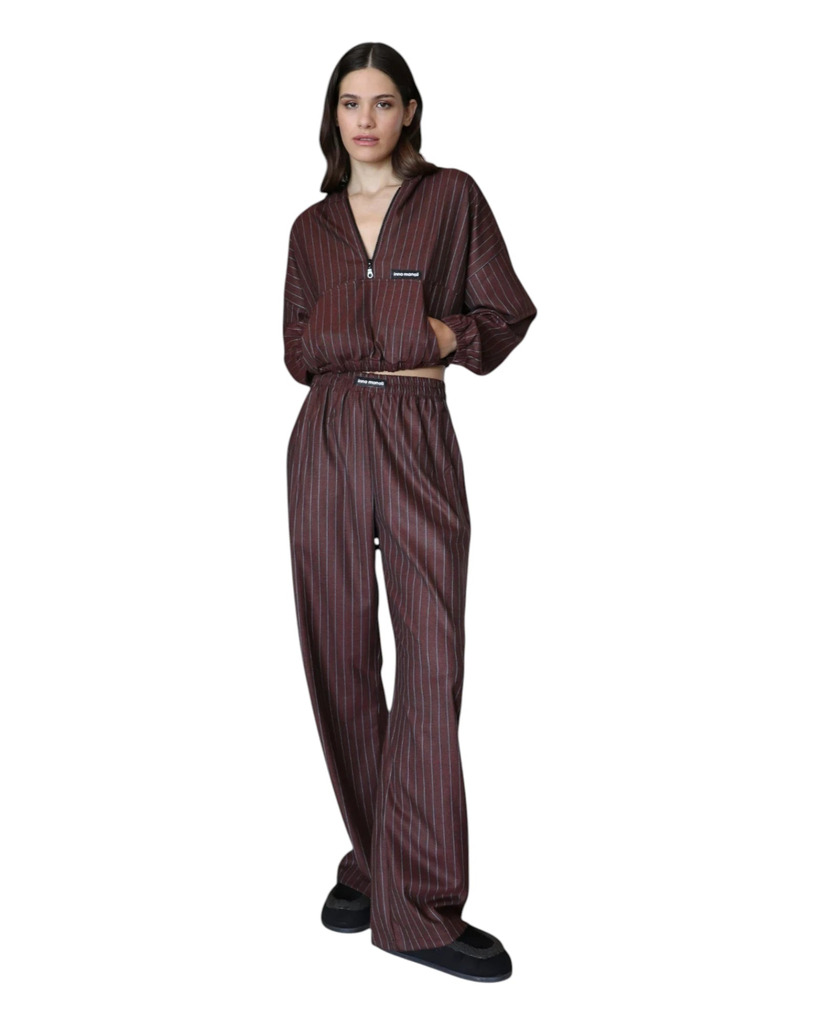 Die Inna Manoli Wide Leg Hose Gestreift bringt den Charme klassischer Muster in die urbane Streetwear. Mit ihrem weiten, fließenden Schnitt und dem elastischen Bund vereint sie Komfort und stilbewusste Eleganz. Das feine Streifenmuster in Braun-Schwarz sorgt für eine moderne, schlanke Silhouette und verleiht jedem Outfit eine raffinierte Note.