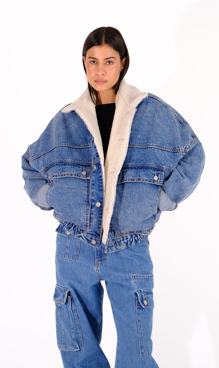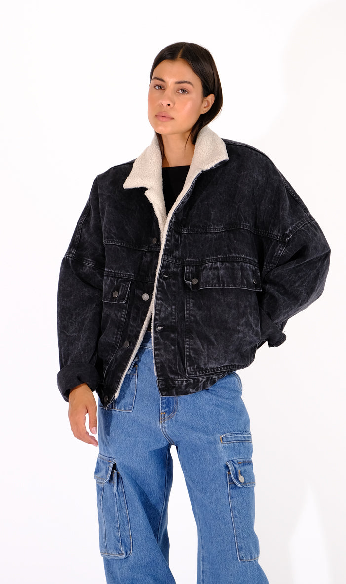 • Κλείσιμο με κουμπί Επένδυση Faux sherpa