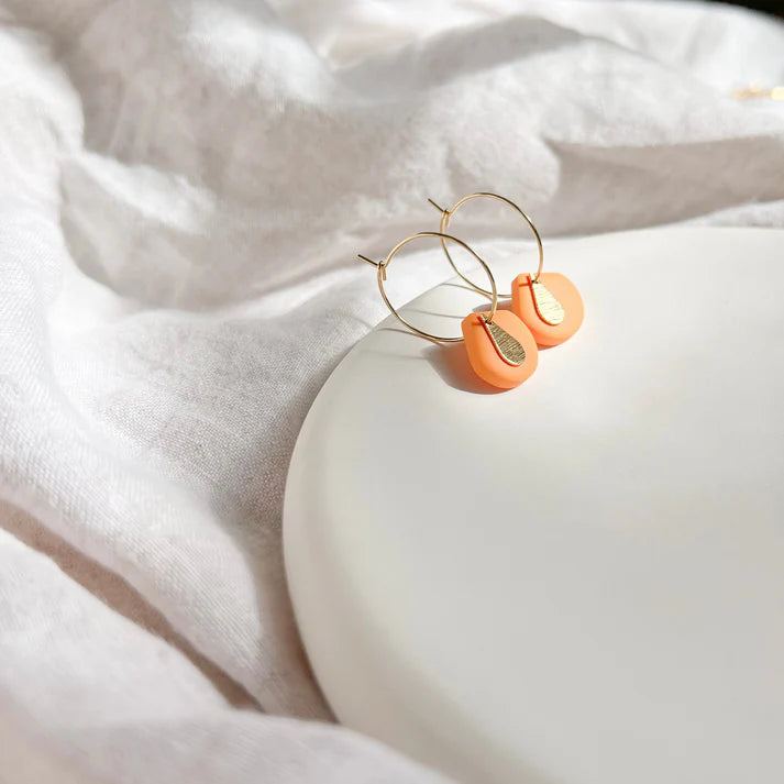 Τα ανοιχτόχρωμα μενταγιόν από πολυμερικό πηλό κάνουν τα κρίκους σκουλαρίκια όχι μόνο μια κομψή πρόταση, αλλά και έναν άνετο σύντροφο για την καθημερινή ζωή.