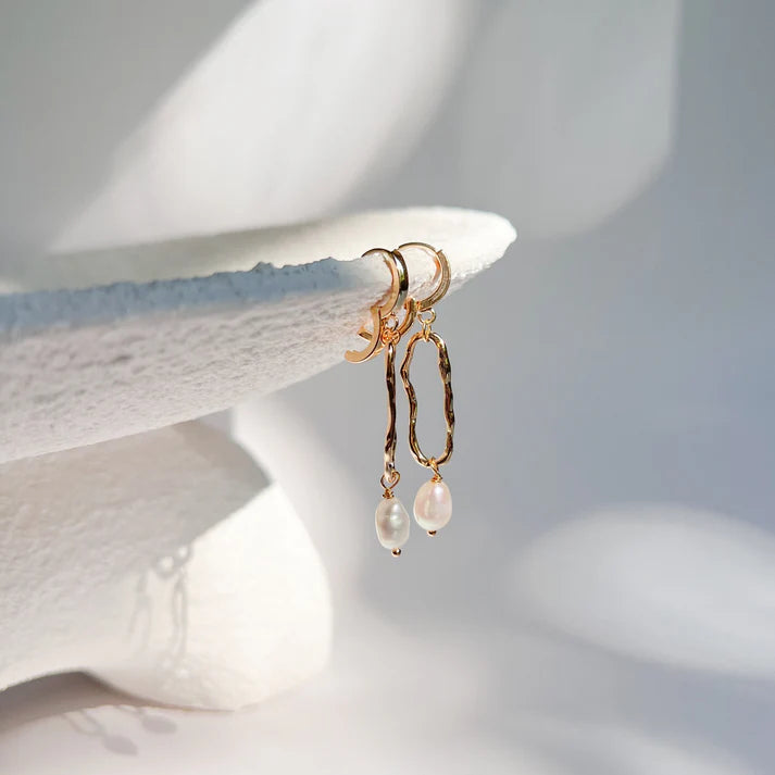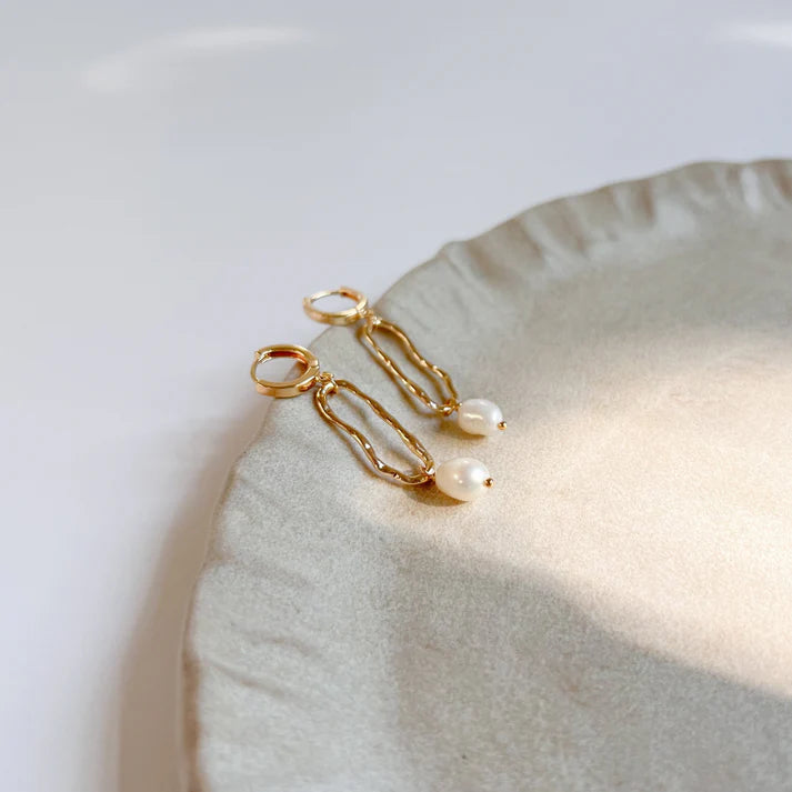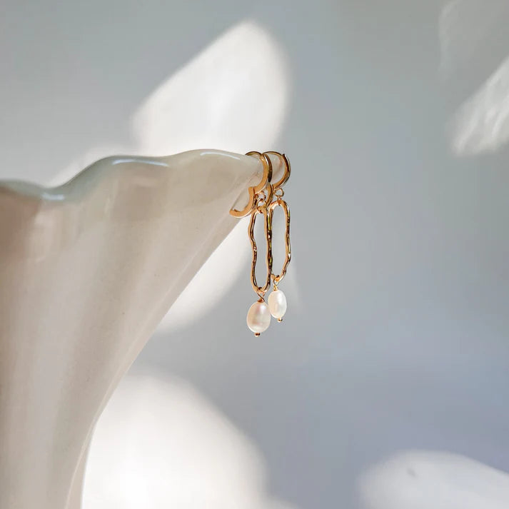 Γωνιακά σκουλαρίκια Winnis CHLOÉ | Κομψότητα σε χρυσό με μαργαριτάρια γλυκού νερού