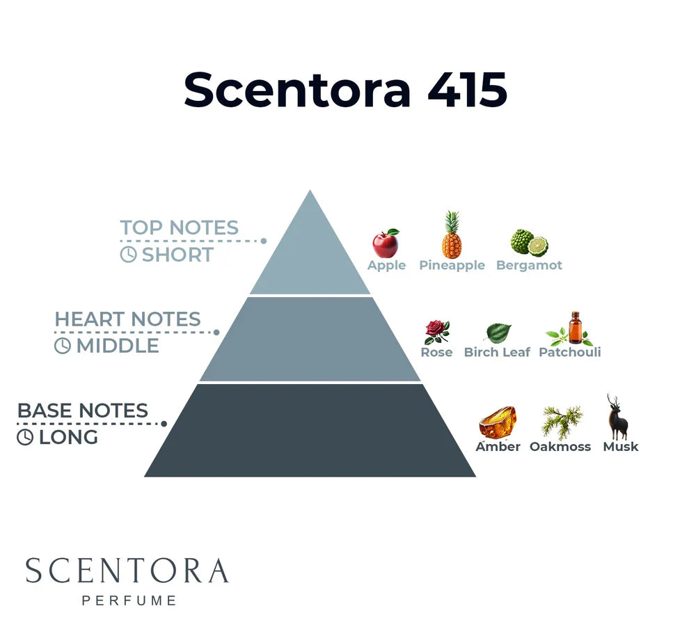 Ένα άρωμα που δείχνει παρουσία – χωρίς να είναι δυνατό. Το Scentora 415 είναι κάτι περισσότερο από ένα άρωμα. Είναι μια δήλωση. Για άντρες που ηγούνται χωρίς να κυριαρχούν – και επιδεικνύουν πάντα τάξη.