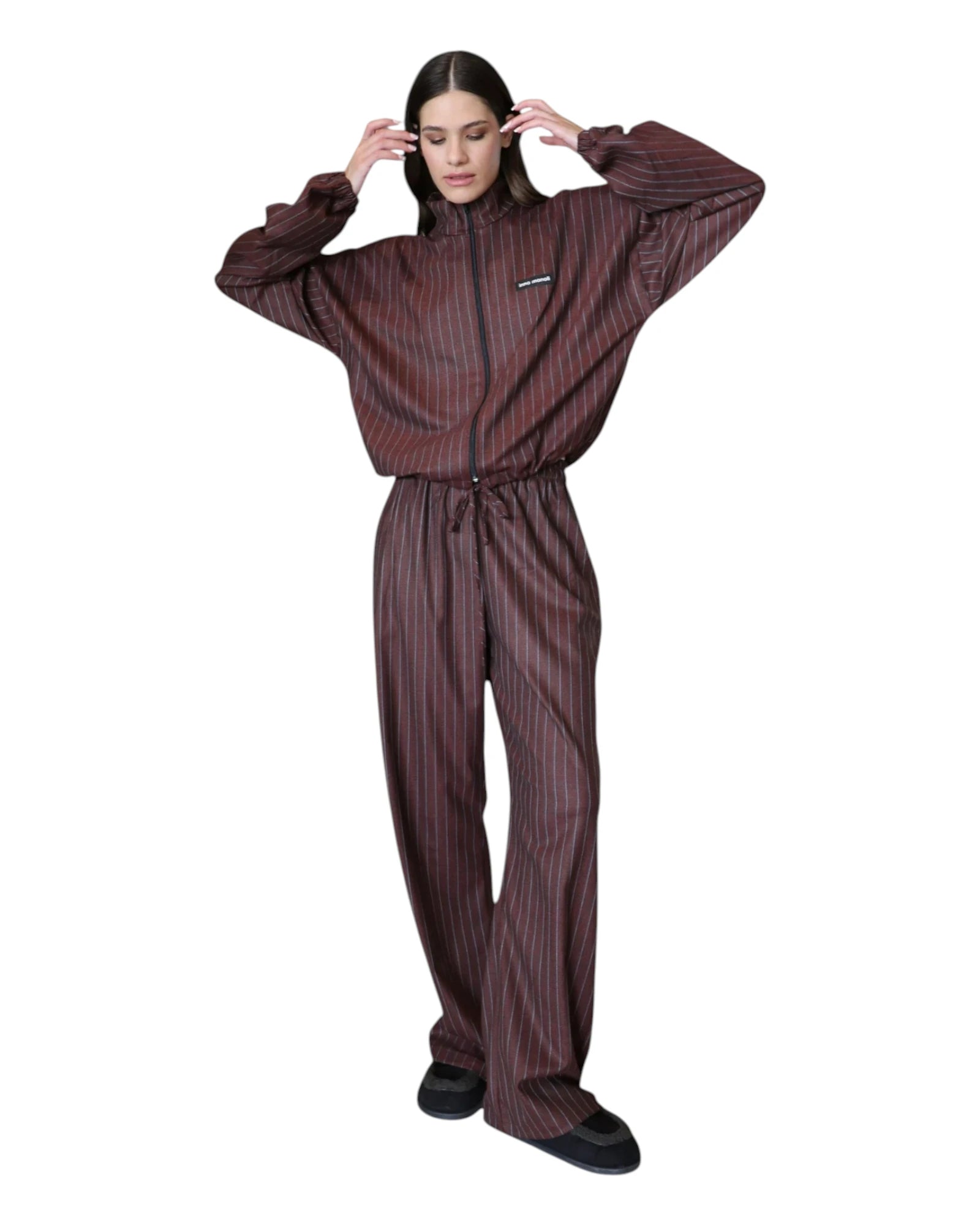 Die Inna Manoli Wide Leg Hose Gestreift bringt den Charme klassischer Muster in die urbane Streetwear. Mit ihrem weiten, fließenden Schnitt und dem elastischen Bund vereint sie Komfort und stilbewusste Eleganz. Das feine Streifenmuster in Braun-Schwarz sorgt für eine moderne, schlanke Silhouette und verleiht jedem Outfit eine raffinierte Note.