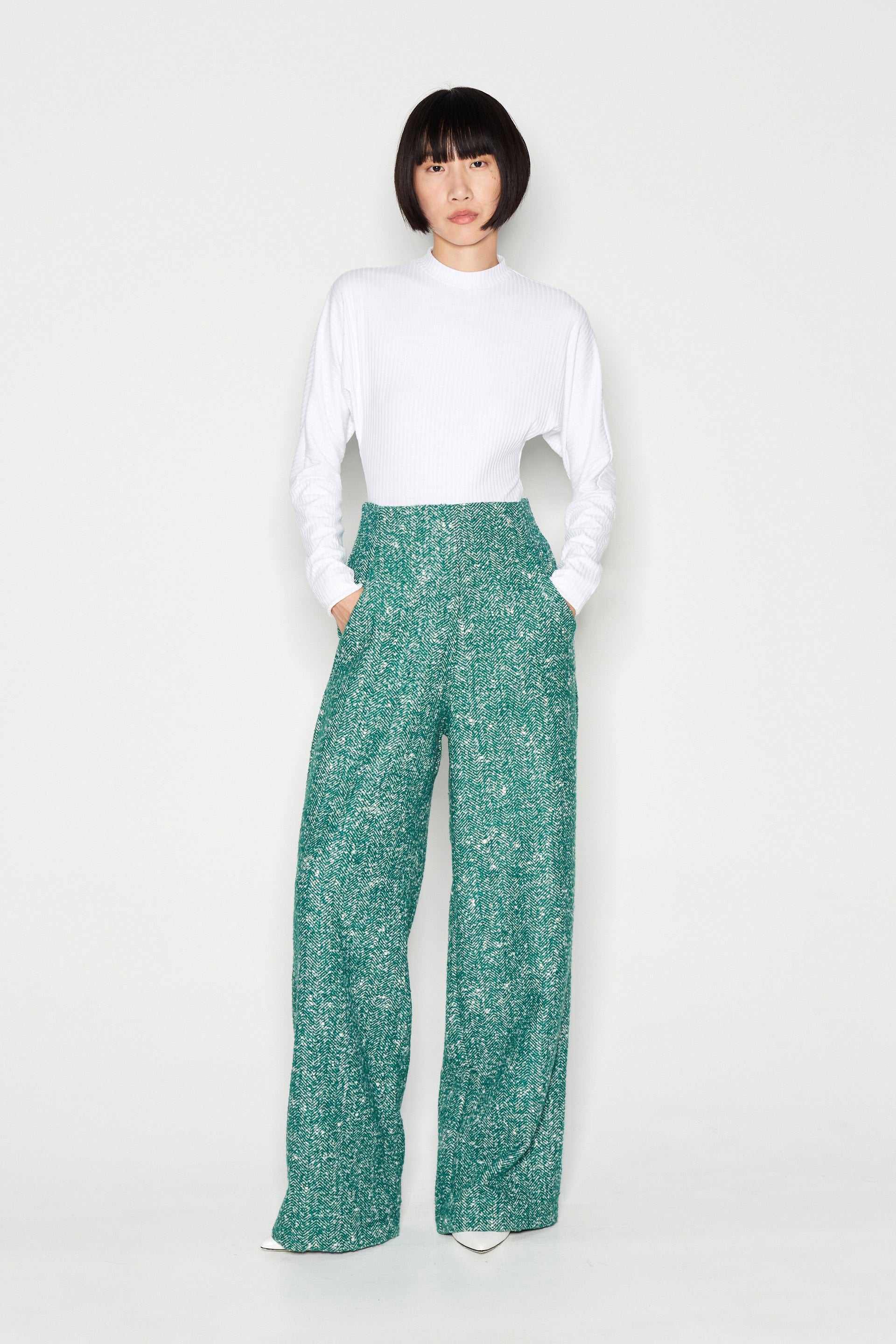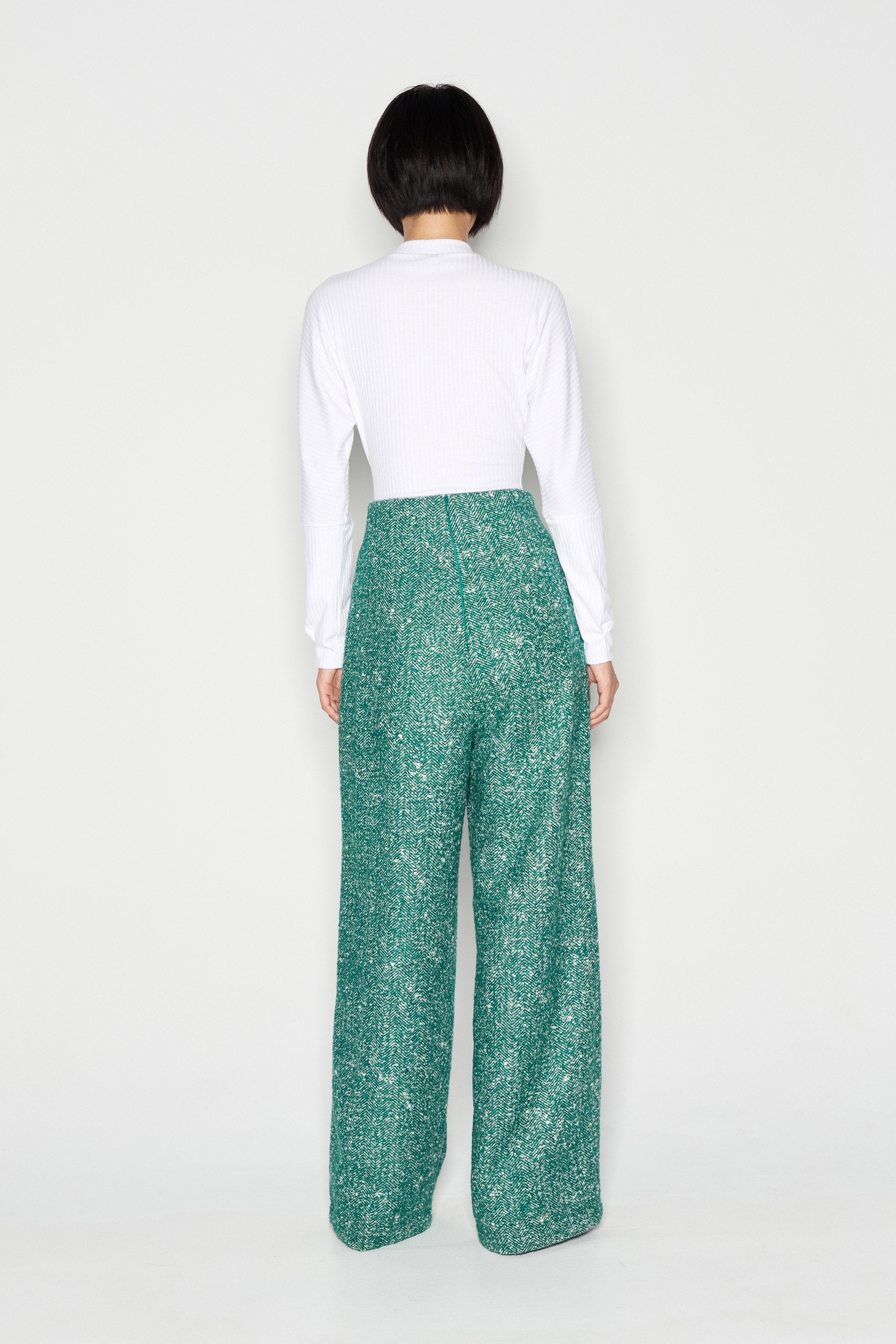 The Cinematic Threads trousers by Nadia Rapti combine contemporary elegance with a modern, high-waisted fit. Crafted from a premium wool blend, the trousers offer a flowing, wide leg shape that ensures both comfort and style. Perfect for sophisticated looks, they pair ideally with short sleeve shirts, sweaters or the matching blazer for a smart ensemble.