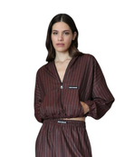 Gefertigt aus hochwertigem Material mit softem Griff, bietet die Jacke nicht nur ein starkes Fashion-Statement, sondern auch hohen Tragekomfort. Das subtile Inna-Manoli-Logo auf der Brust setzt ein klares Signature-Detail. Zusammen mit der Wide Leg Hose im gleichen Streifenmuster entsteht ein markanter Co-Ord Look – ideal für Fashionistas, die Streetwear mit Raffinesse lieben.