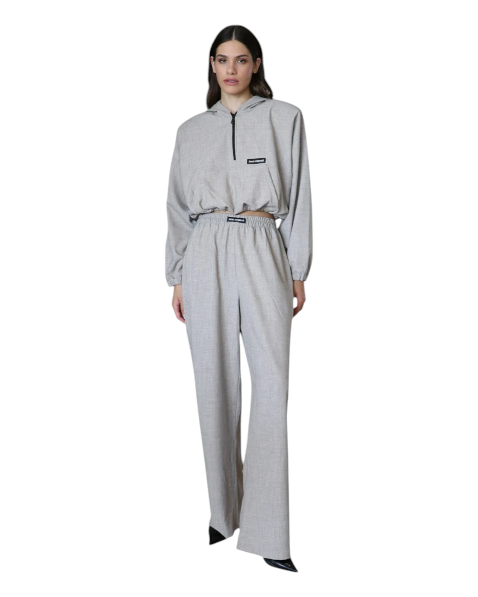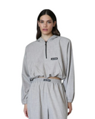 Der Inna Manoli Hoodie Wool Touch verbindet sportliche Lässigkeit mit edler Materialoptik. Sein stoffähnlicher Wollgriff sorgt für eine elegante Struktur und ein angenehm weiches Tragegefühl, während der kurze Oversized-Schnitt mit elastischem Saum für moderne Proportionen steht.