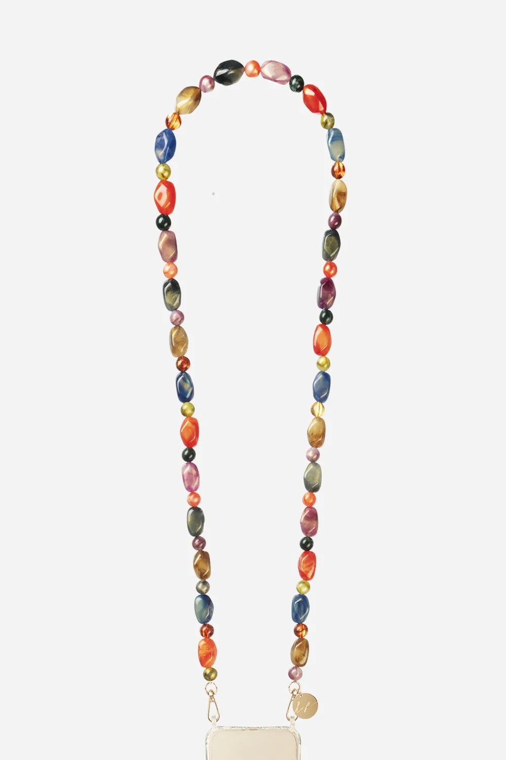 The "LaCoqueFrancaise mobile phone chain TARA Multicolor" is a unique jewelry chain for your smartphone. The 120 cm long chain is made of colorful resin beads that are not only durable and light, but are also handmade. Each bead has its own special feature, which makes the chain an individual accessory. The rotating carabiners and rings are coated with stainless steel, which ensures durability. Get this stylish and practical mobile phone chain now!