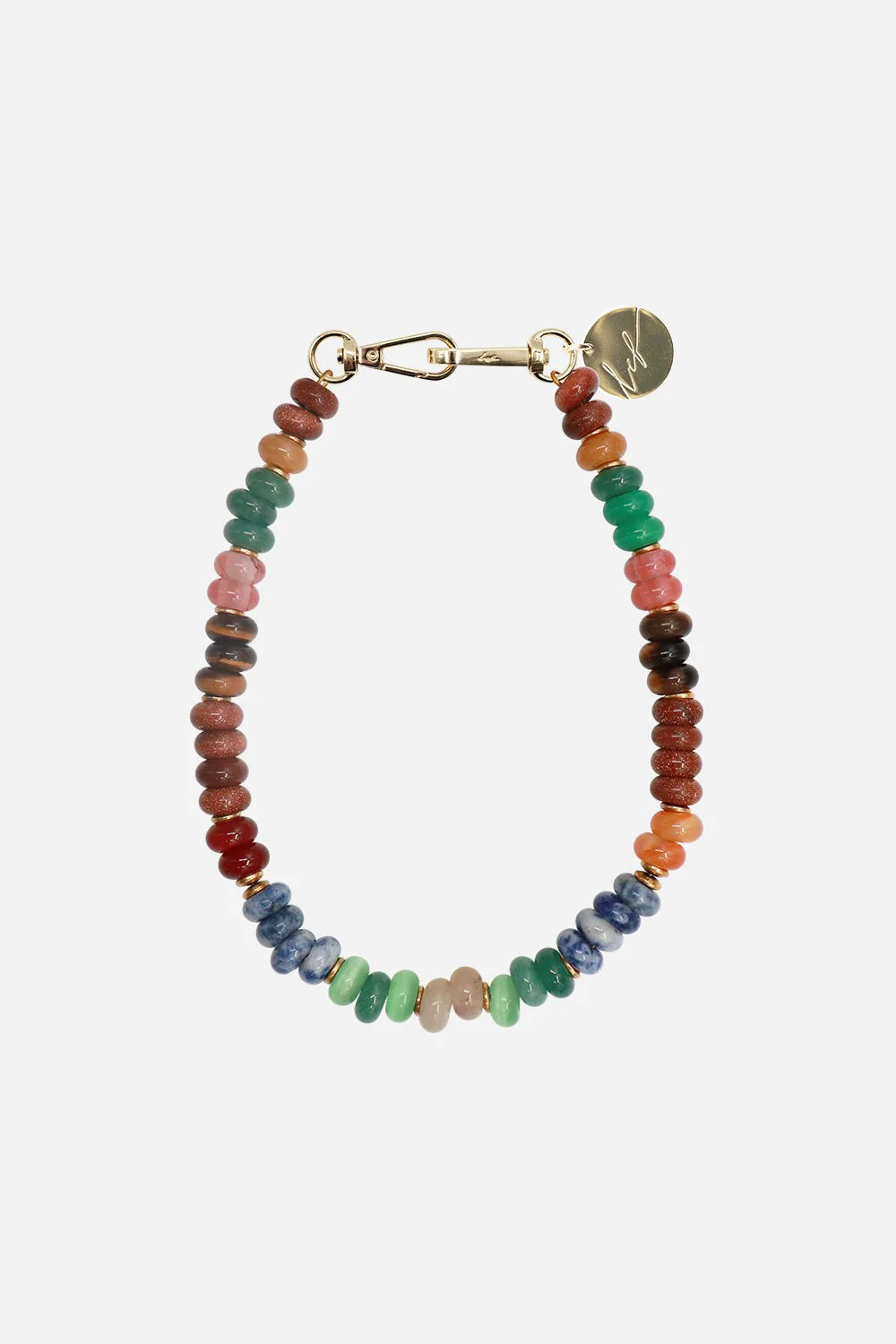 The stones used include aventurine, landscape jasper, green agate, tiger eye and rose quartz. Each pearl is carefully selected and contributes to the unique aesthetic of this beautiful cell phone chain. Perfect for those who want to combine functionality and elegance in one accessory.