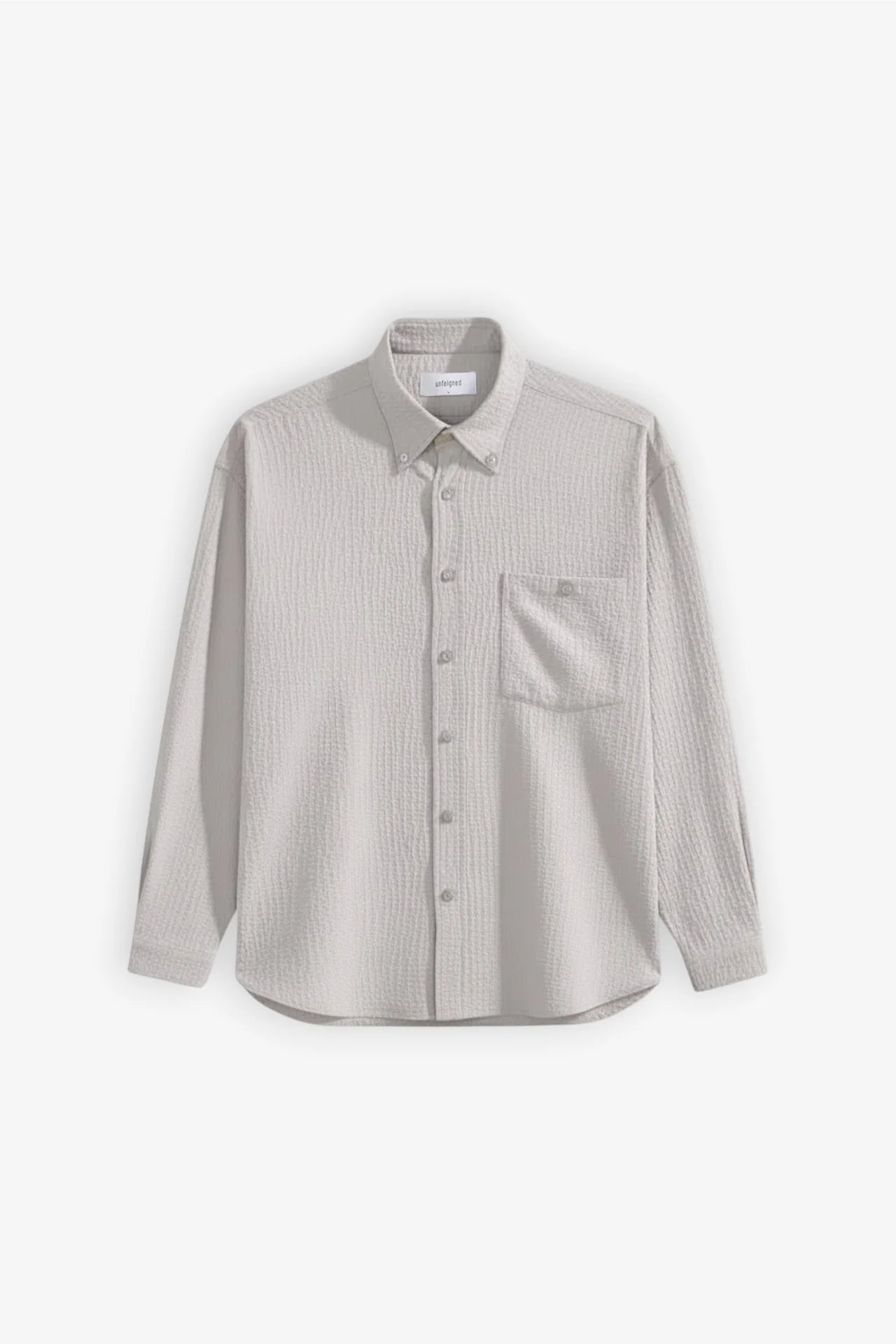The Unfeigned Long Sleeve Baggy Seersucker Shirt offers a fresh take on the classic shirt, featuring a modern oversized silhouette and premium fabric. The textured seersucker material provides a vibrant look and comfortable breathability, perfect for warm days at the office or relaxed evening events.