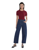 In der Farbe Blue Rain präsentiert sich die Jeans in einem tiefen, satten Blau, das vielseitig kombinierbar ist – ob casual mit Sneakern und T-Shirt oder elegant mit Bluse und Heels. Der weite, gerade Schnitt sorgt für Bewegungsfreiheit und einen entspannten Look, während die hochgeschnittene Taille eine schmeichelhafte Silhouette zaubert. Klassische 5-Pocket-Details und das dezente Sac & Co Logo-Patch am Bund unterstreichen den authentischen Denim-Charakter.