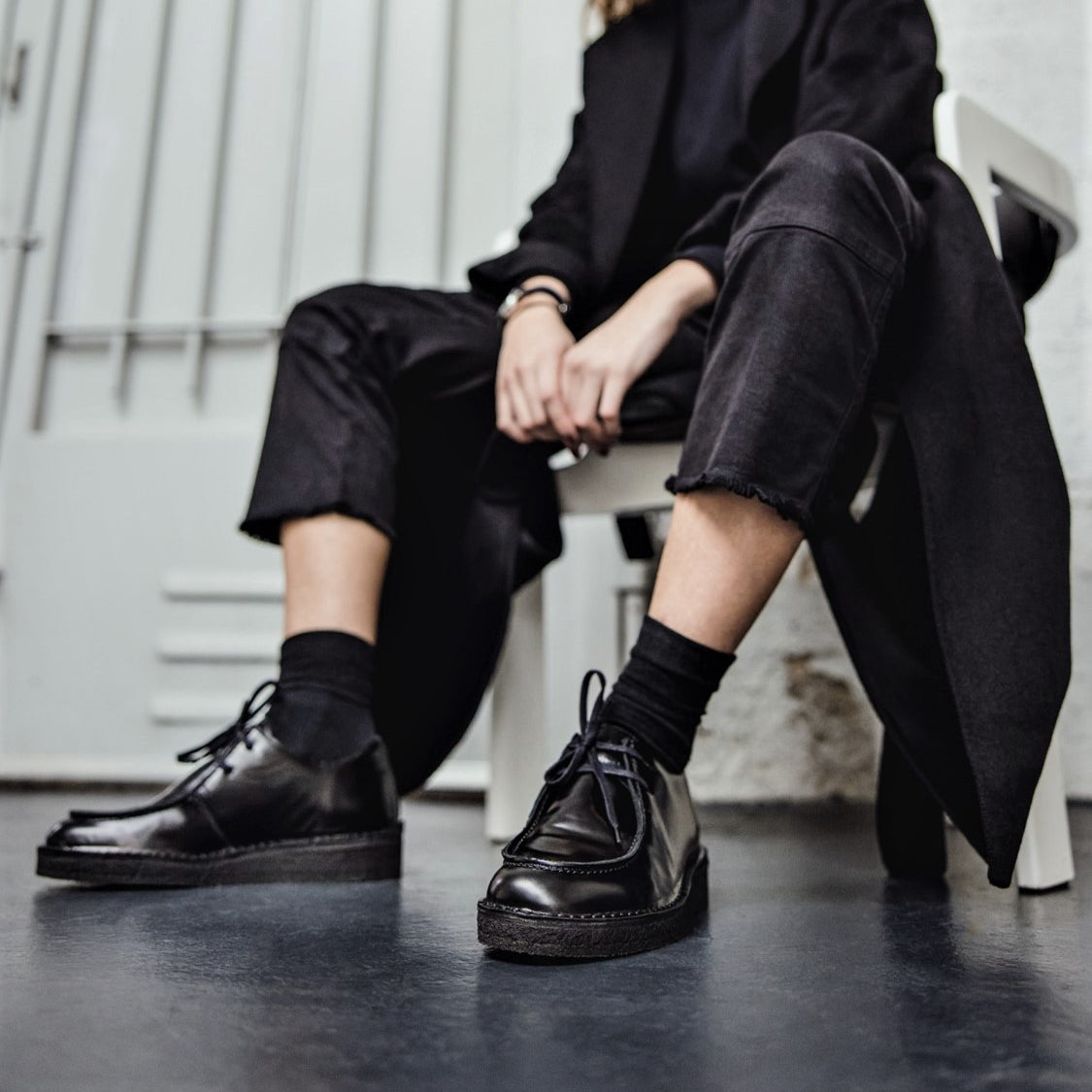 Handgefertigte Schuhe aus Griechenland und Portugal – ein urban-verspielter Look, der traditionelle Elemente modern interpretiert.