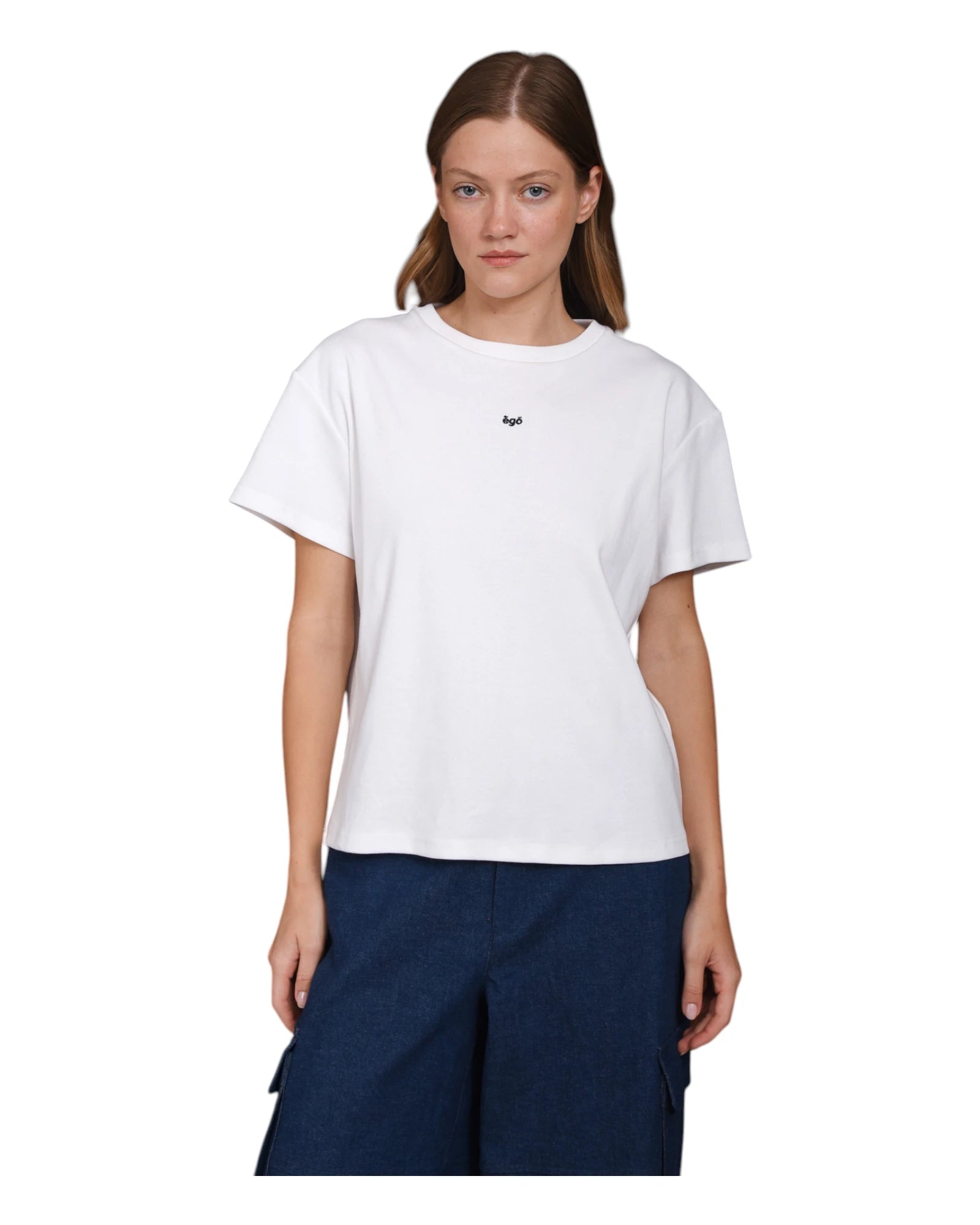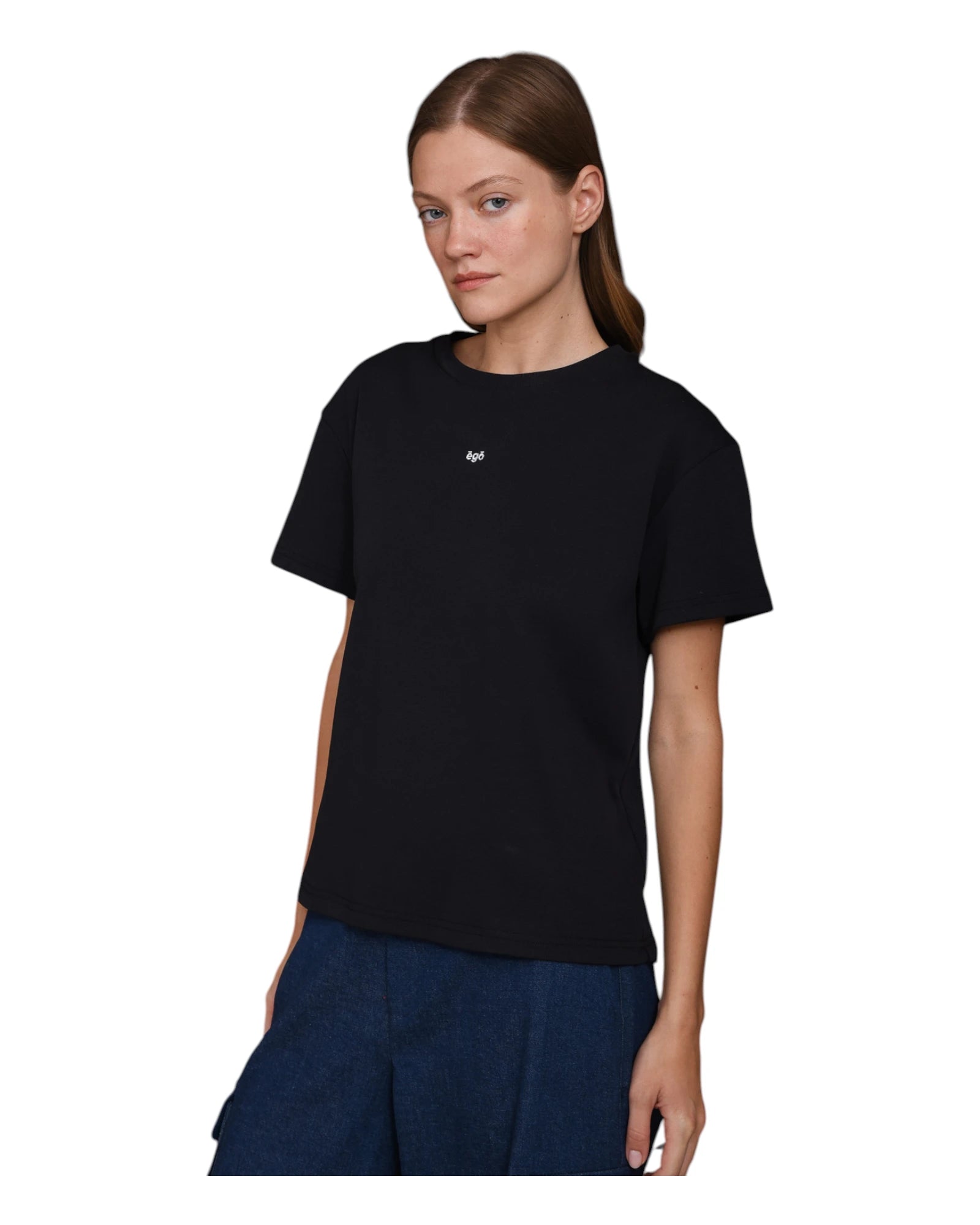 Stickerei „Ἐγώ / Ich“ auf der Brust als minimalistisches Detail